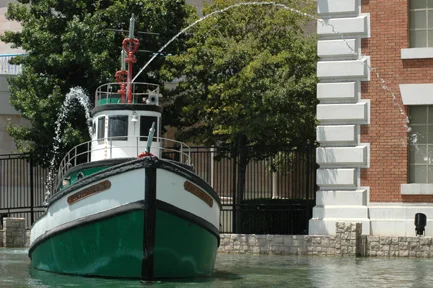 The image below has a dominant center of interest, the boat. Also, the arching water also complements the shape of the boat, creating a dominant shape that is repeated three times. The green of the boat contrasts the red color of the brick and the strong perpendicular shape of the wall meeting the building helps give the photo stability.